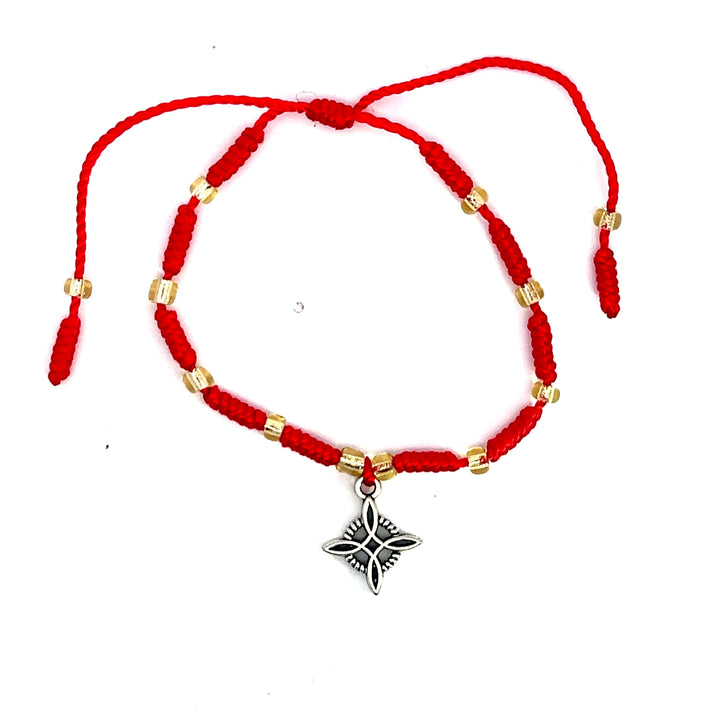 Witch Knot Evil Eye Bracelet Handmade Metal Charm Red Color Knotted Rope Adjustable Pulsera de Nudo de Bruja con Mal de Ojo Hecho a Mano Medalla de Metal Color Rojo Se...